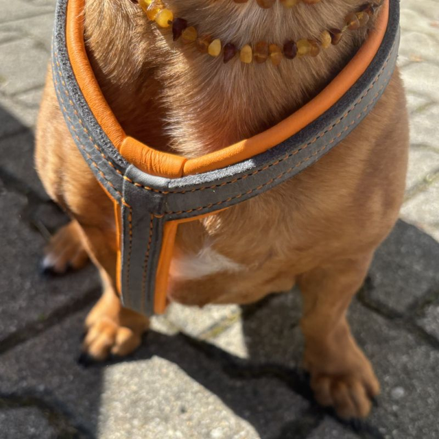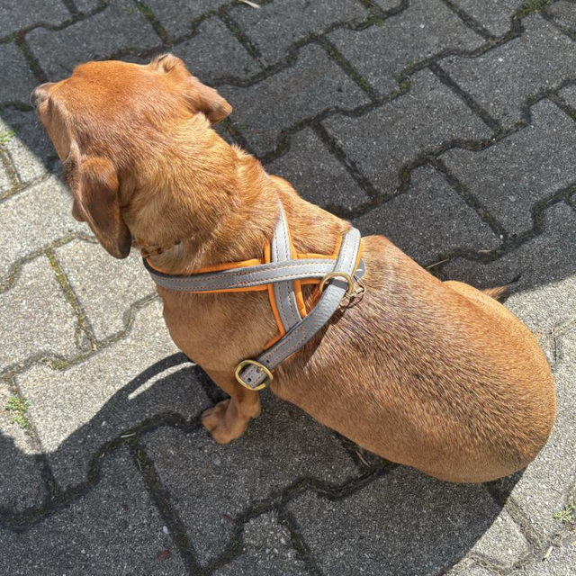 Hunde Brustgeschirr aus feinem Leder, mit farbigem Polsterleder
