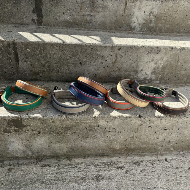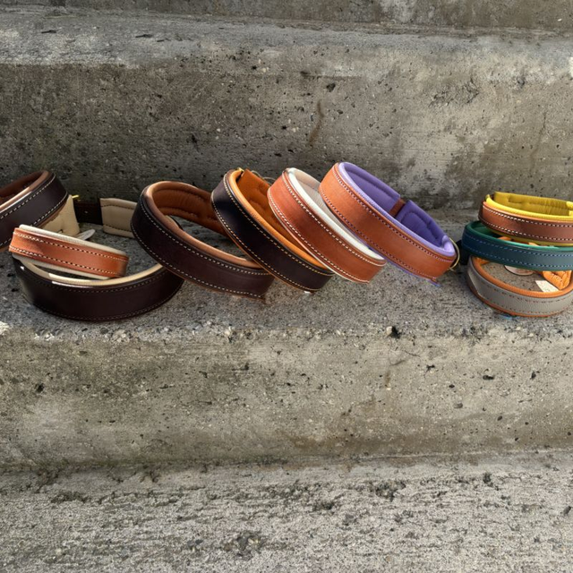 Hundehalsband aus vegetabil gegerbtem Qualitätsleder, Polsterleder farbig