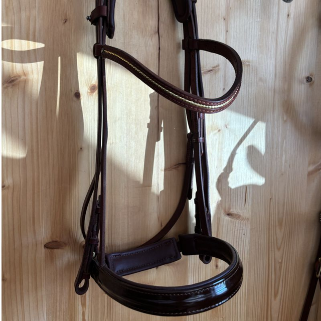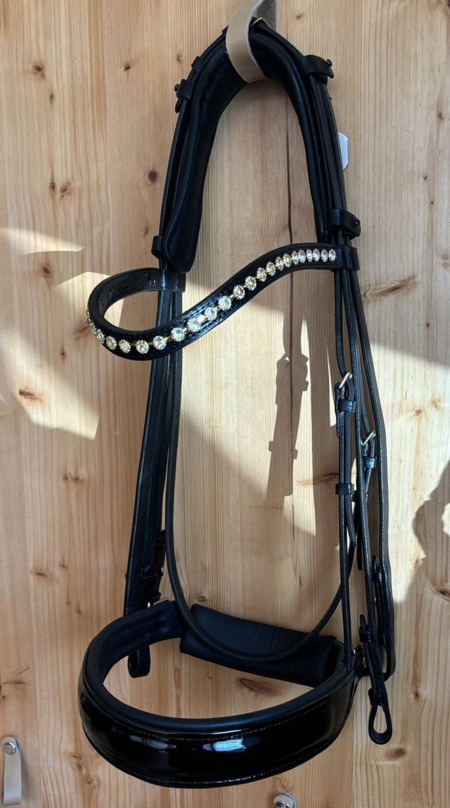 Kandarenzaum aus vegetabil gegerbtem Qualitätsleder, Stirnband Leder (Strass/Lack gegen Aufpreis)
